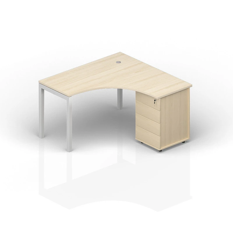 Стол правый на опорной тумбе (4 ящика, 1 громмет) PEG1414 2396-036